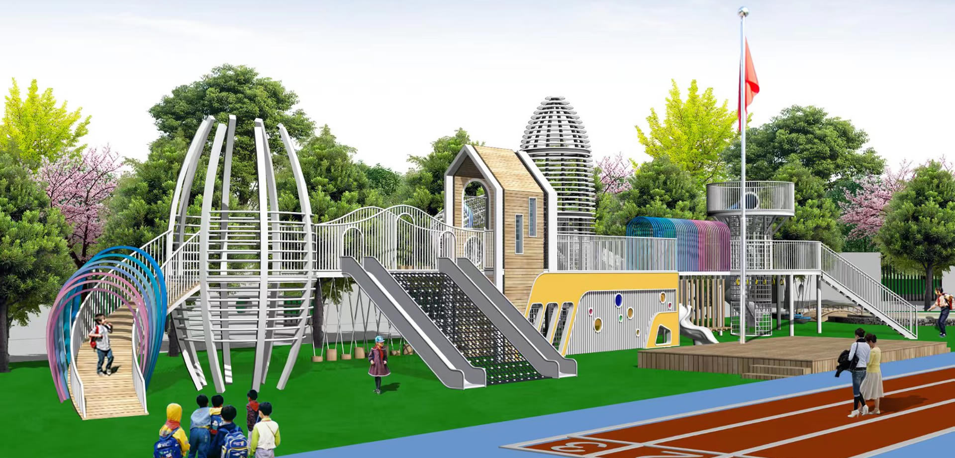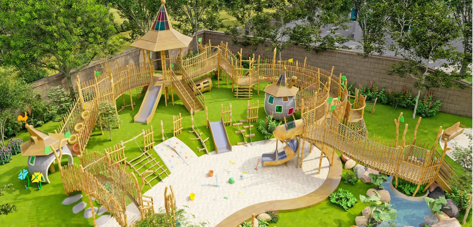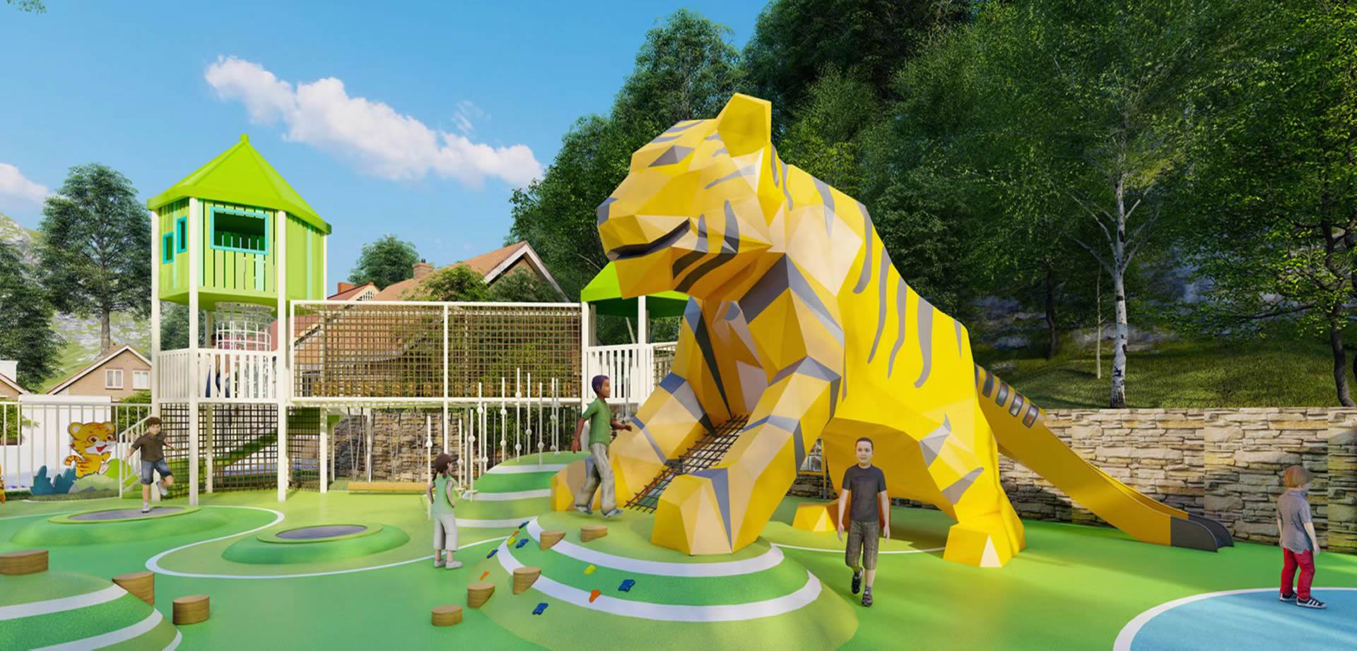 温州大榕树游乐设备有限公司专业设计师团队根据前期沟通策划,全程围绕项目需求展开思维激荡,滑梯厂家为客户提供“量身定制”颇具创意的整园规划设计方案。